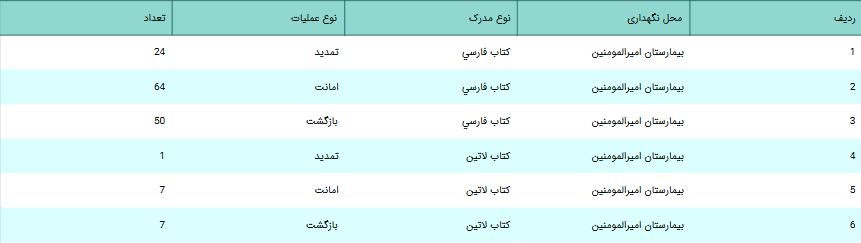 عملکرد کتابخانه بیمارستان امیرالمومنین: