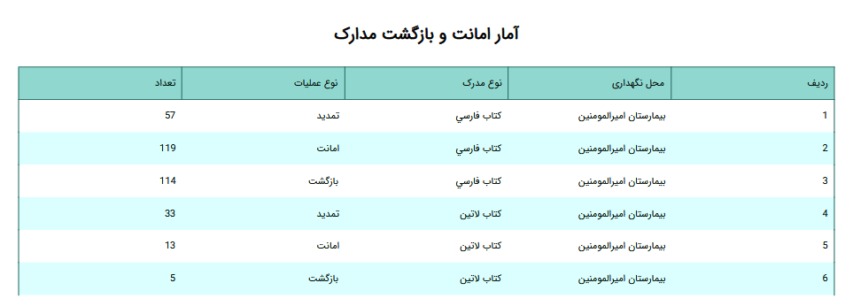 عملکرد کتابخانه بیمارستان امیرالمومنین :