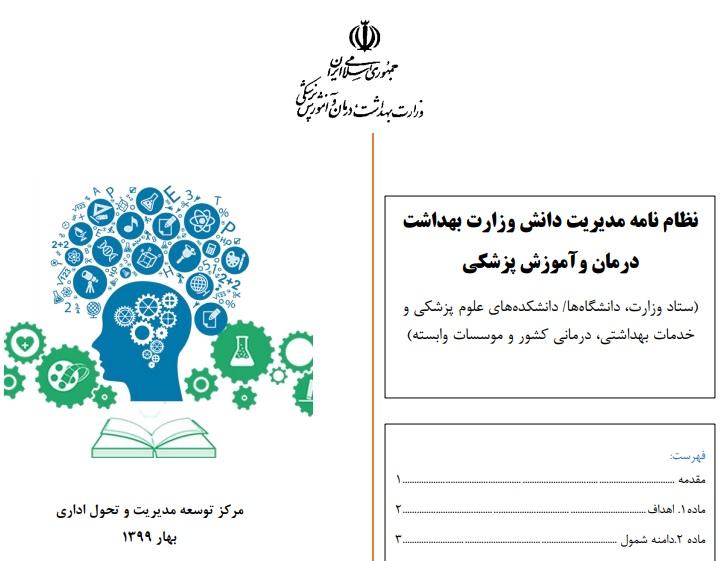 | 8 | نظام نامه مدیریت دانش وزارت بهداشت ، درمان و آموزش پزشکی | قوانین و اسناد مدیریت دانش | ۳۰ شهریور ۱۳۹۹ | ||||