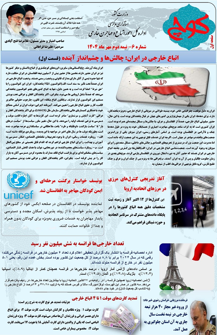 ششمین شماره نشریه کوچ، توسط دفتر امور اتباع و مهاجرین خارجی استان مرکزی منتشر گردید.