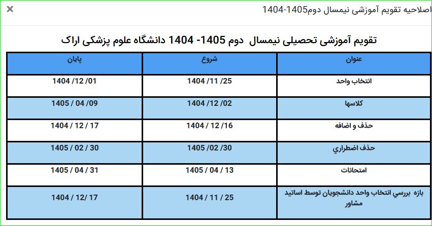 تقویم آموزشی تعداد بازدید:۹۶۱۷ ارسال به دیگران نام شما ایمیل شما ایمیل دریافتکننده ارسال انصراف تقویم آموزشی نیمسال دوم تحصیلی 1405-1404