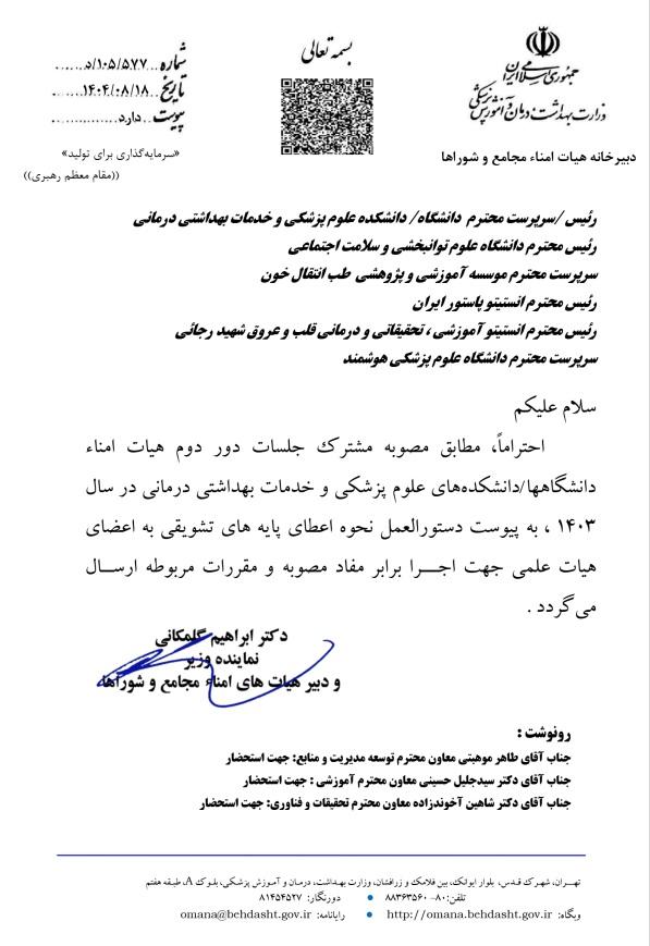 | 1 | دستورالعمل نحوی اعطای پایه تشویقی به اعضای هیات علمی دانشگاههای علوم پزشکی | آیین نامه اجرایی ارتقاء اعضای هیات علمی دانشگاه ها | ۲۹ اسفند ۱۴۰۳ | ۱۰۵/۵۷۷ |