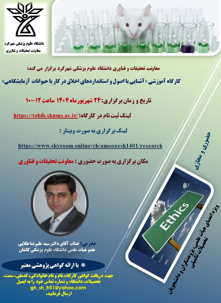 آشنایی با اصول و استانداردهای اخلاق در کار با حیوانات آزمایشگاهی در ۲۴ شهریور ماه ۱۴۰۴ سال جاری از ساعت