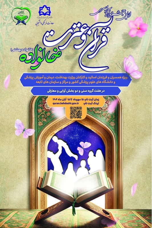 اولین جشنواره سراسری قرآن و عترت خانواده ویژه همسران و فرزندان اساتید، کارکنان وزارت بهداشت، دانشگاه های علوم پزشکی کشور و مراکز و سازمانهای تابعه