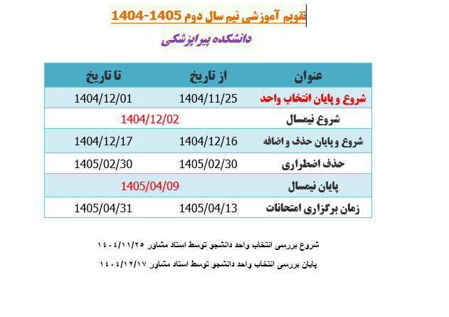 اصلاحیه تقویم آموزشی و زمان انتخاب واحد در نیمسال دوم سال تحصیلی ۱۴۰۵-۱۴۰۴