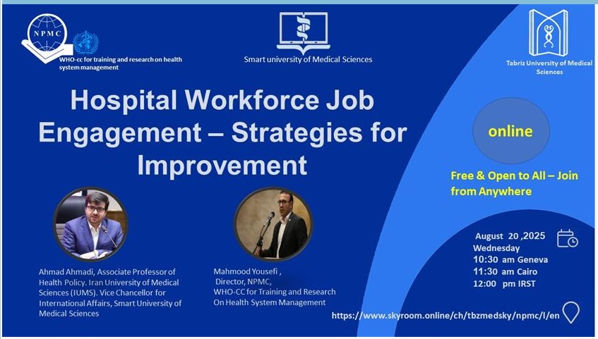 وبینار آموزشی بین المللی با عنوان Hospital Workforce Job Engagement – Strategies for Improvement ۲۸ مرداد ۱۴۰۴ | ۱۰:۴۵ کد : ۵۳۸۸۴ اخبار ارسال به دیگران نام شما ایمیل شما ایمیل دریافتکننده ارسال انصراف تعداد بازدید:۲