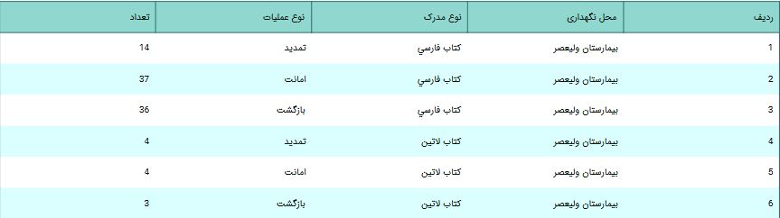 عملکرد کتابخانه بیمارستان ولیعصر:
