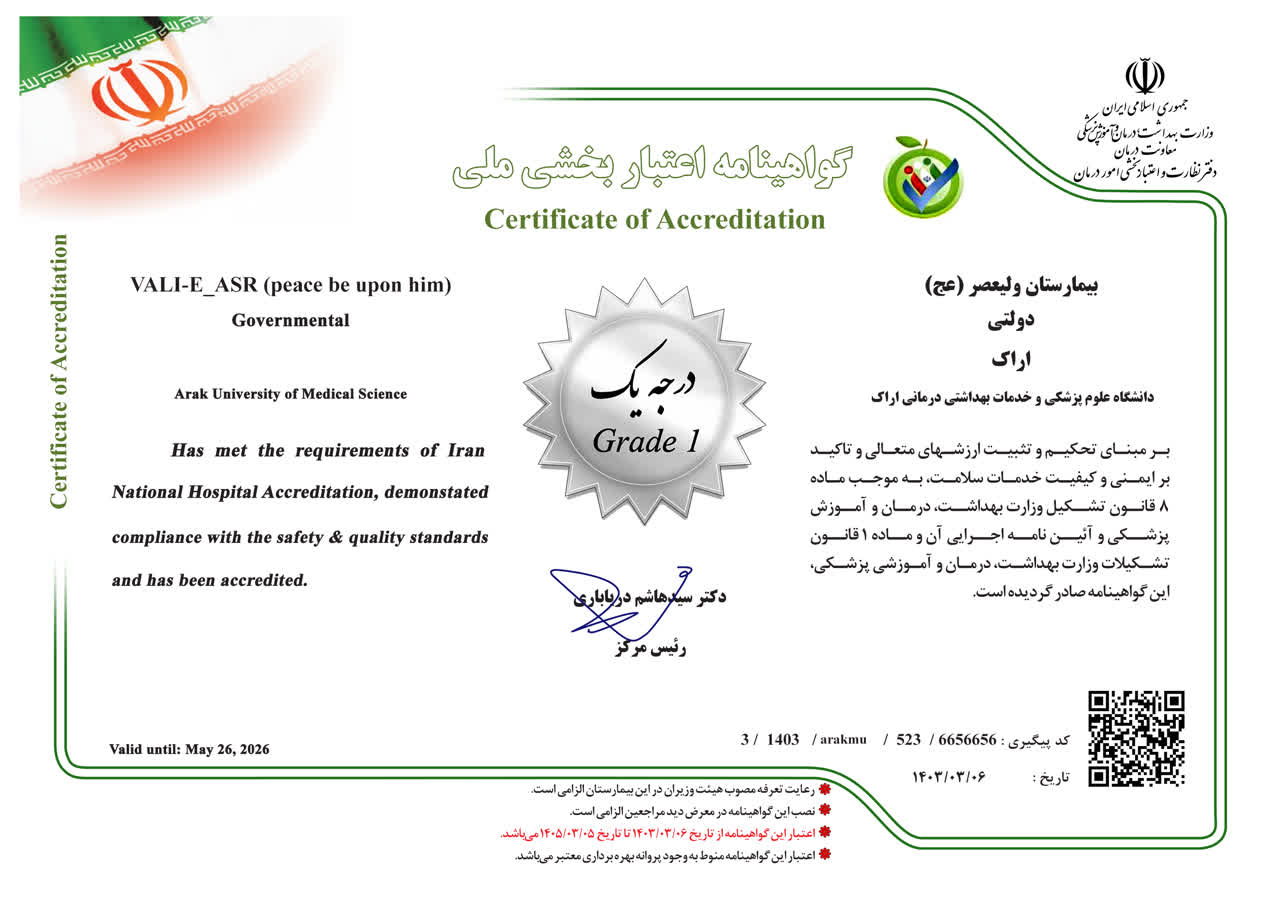 افتخارات تعداد بازدید:۱۵۰۰ ارسال به دیگران نام شما ایمیل شما ایمیل دریافتکننده ارسال انصراف کسب گواهینامه استاندارد ایزو مدیریت کیفیت در سال 1389 کسب گواهینامه اعتباربخشی ملی در سال 1394 کسب گواهینامه اعتباربخشی ملی در سال 1403