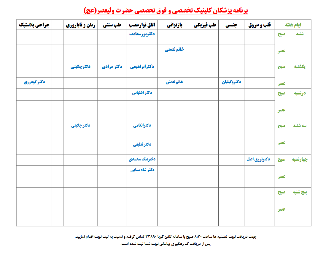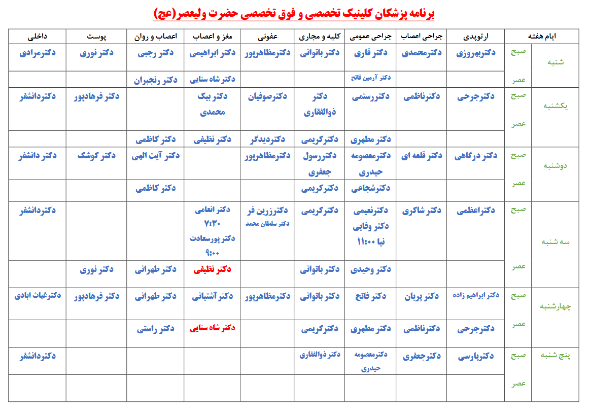 برنامه پزشکان کلینیک تخصصی و فوق تخصصی مرکز