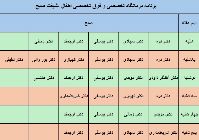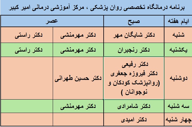 برنامه عصر درمانگاه تخصصی و فوق تخصصی اطفال ، مرکز آموزشی درمانی امیر کبیر![]() |
