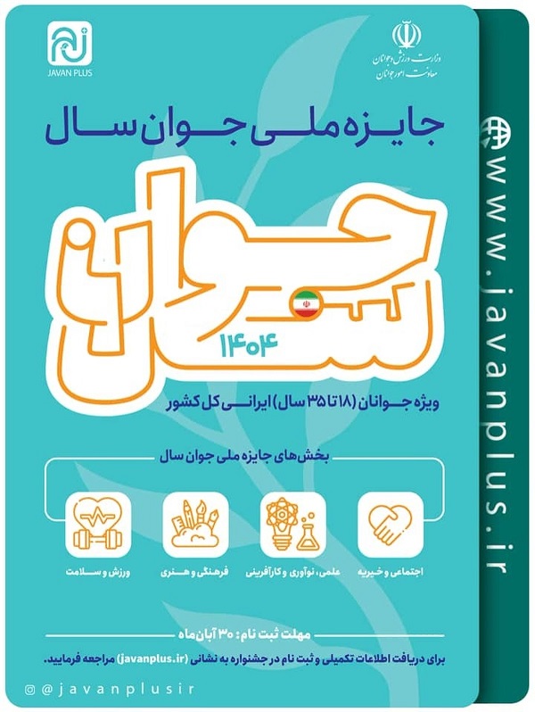 جایزه ملی جوان ۱۷ آبان ۱۴۰۴ | ۱۳:۲۴ کد : ۵۶۱۱۵ اطلاعیه ارسال به دیگران نام شما ایمیل شما ایمیل دریافتکننده ارسال انصراف تعداد بازدید:۱۰۴۴ جایزه ملی جوان سال ۱۴۰۴ فراخوان شرکت در جایزه ملی جوان سال ۱۴۰۴ منتشر شد.