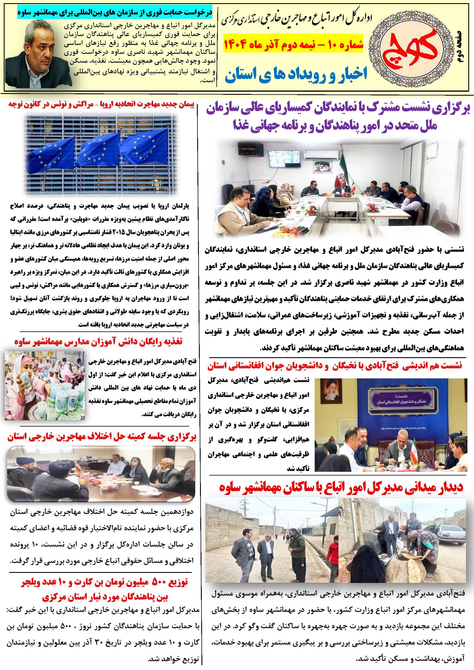 دهمین شماره نشریه کوچ ۰۳ دی ۱۴۰۴ | ۰۹:۲۱ کد : ۵۷۵۲۰ اطلاعیه ارسال به دیگران نام شما ایمیل شما ایمیل دریافتکننده ارسال انصراف تعداد بازدید:۲۲ دهممین شماره نشریه کوچ، توسط دفتر امور اتباع و مهاجرین خارجی استان مرکزی منتشر گردید.