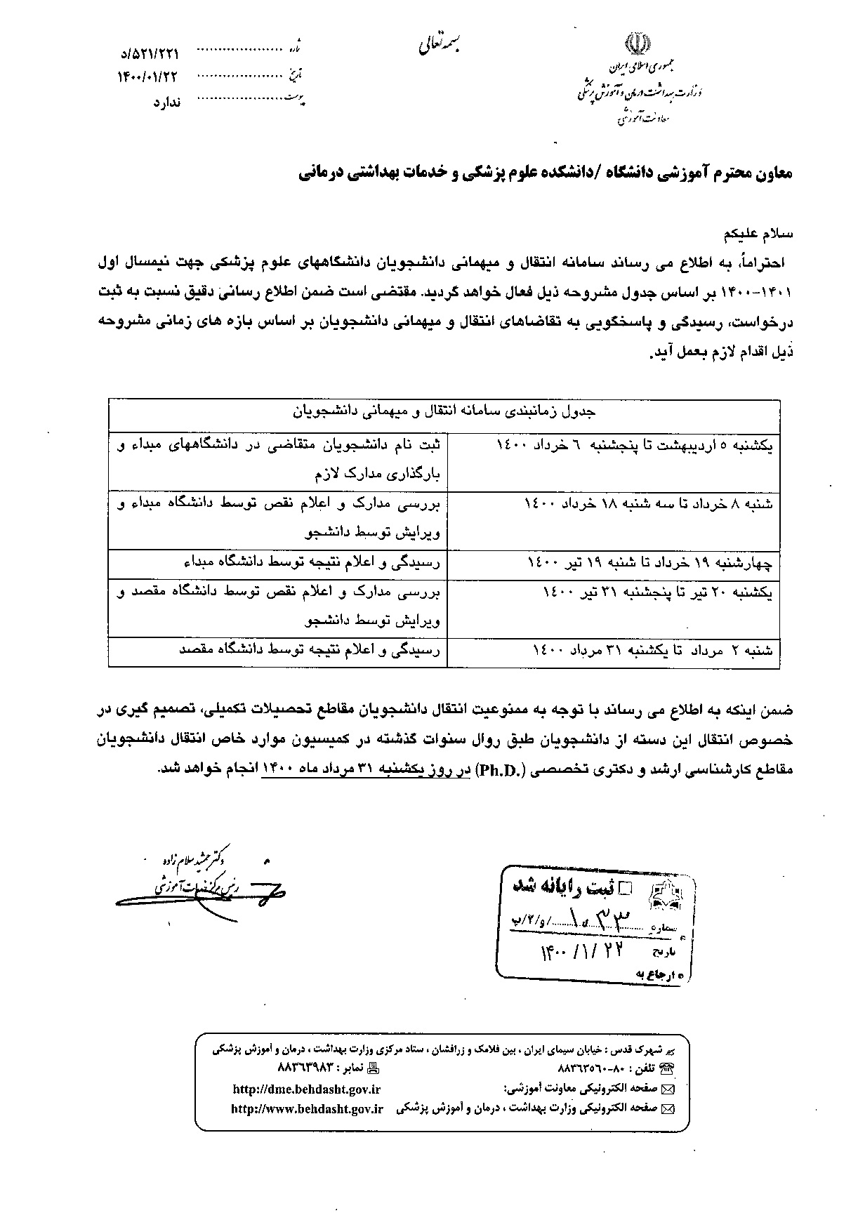 جدول زمانبندی سامانه میهمانی و انتقال دانشجویان نیمسال اول ۱۴۰۱-۱۴۰۰ ۰۵ اردیبهشت ۱۴۰۰ | ۱۱:۰۳ کد : ۱۶۷۹۷ اخبار ارسال به دیگران نام شما ایمیل شما ایمیل دریافتکننده ارسال انصراف تعداد بازدید:۴۴۷