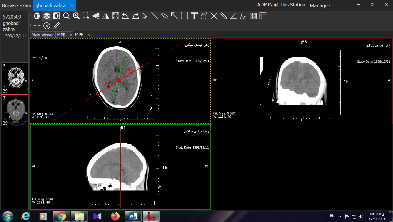 دسترسی به لینک اموزش بازسازی نمای کرونال و ساجیتال و اگزیال در تصاویر سی تی اسکن و MRIیا (MPR (multi-planar reconstruction