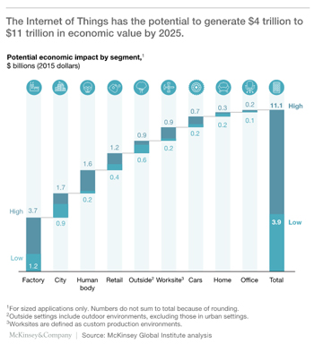 فناوری های بسیار کمی در دنیا هستند که توانایی تاثیرگذاری چند تریلیون دلاری بر روی اقتصاد جهانی را دارند و اینترنت اشیا یکی از آنهاست. براساس گزارش موسسه مک کینزی، میزان تاثیر اینترنت اشیا بر روی اقتصاد جهانی تا سال 2025 بالغ بر 11 تریلیون دلار خواهد بود. این فناوری در دوران اوج بیکاری ناشی از کرونا به داد بسیاری از کسب و کارها رسید. این امر با وصل کردن دوباره تیم های کاری به هم و سرپا نگه داشتن برندها روی داد. با این حساب صحبت از تاثیر چند تریلیون دلاری این فناوری خیلی دور از ذهن نخواهد بود.
