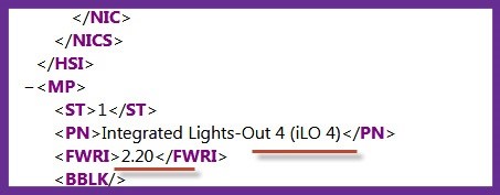 در این صفحه باید اطلاعات مربوط به فیلدهای <PN> و <FWRI> را بررسی نمایید و با لیست iLOهای آسیب پذیر کنترل کنید. اگر نسخه iLO همرا با شماره نسخه ثابت افزار در لیست iLOهای آسیب پذیر قرار داشت، فورا باید نسبت به بروزرسانی و نصب وصله های امنیتی اقدام نمایید. در تصویر زیر یک نمونه دستگاه آسیب پذیرر ا می بینید.