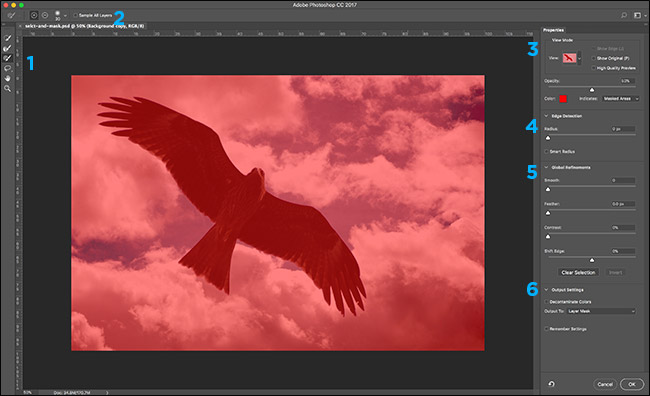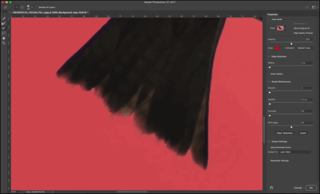 تا زمانی که در بخش Select and Mask Workspace هستید این تصویری که در این پایین میبینید در صفحه کامپیوتر شما وجود دارد.