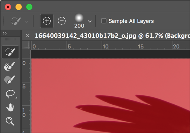 گزینه Quick Select Tool مانند یک قلممو کار میکند، طوری که هر قسمتی که شما انتخاب کنید را نقاشی میکند. در GIF زیر با انتخاب سر پرنده و کشیدن قلمم بر روی بخشی از آن، توانستم کل پرنده را از حالت همپوشانی قرمز دربیاورم و آنرا رنگ کنم.
