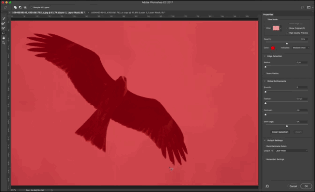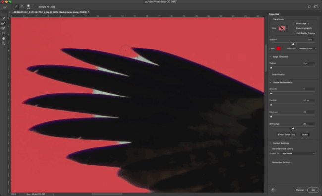 بخش Refine Edge Brush به شما میگوید که بخشی از لبه های پرنده دارای رنگ است. برای اینکه لبه های عکس رنگشان از بین بروند و بهتر شوند، مطابق گیفت زیر عمل کنید: