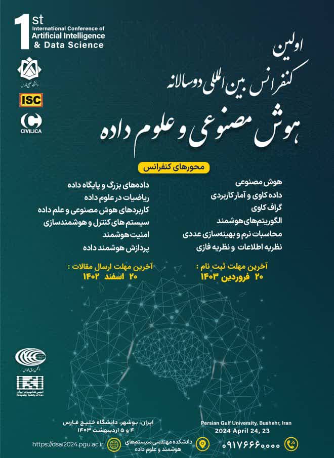 اولین کنفرانس بین المللی دو سالانه هوش مصنوعی و علوم داده ، ۴ و ۵ اردیبهشت ۱۴۰۳ در دانشگاه خلیج فارس برگزار میگردد.
