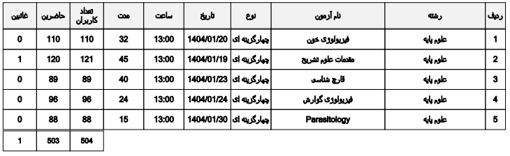 - برگزاری آزمون های الکترونیک داخلی (جدول گزارش آزمون ها به پیوست می باشد)