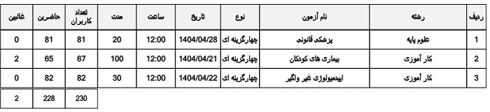· برگزاری 3 آزمون الکترونیک داخلی با حضور 230 دانشجوی ایرانی و بین الملل به شرح جدول