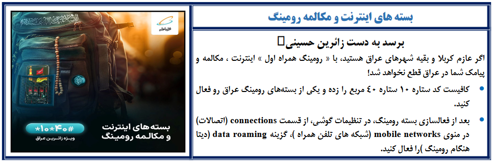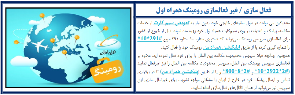 کلیدواژه‌ها: آموزش مخابرات کد اطلاع از حجم اینترنت مکالمه رومینگ فعال سازی رومینگ خرابی تلفن همراه من