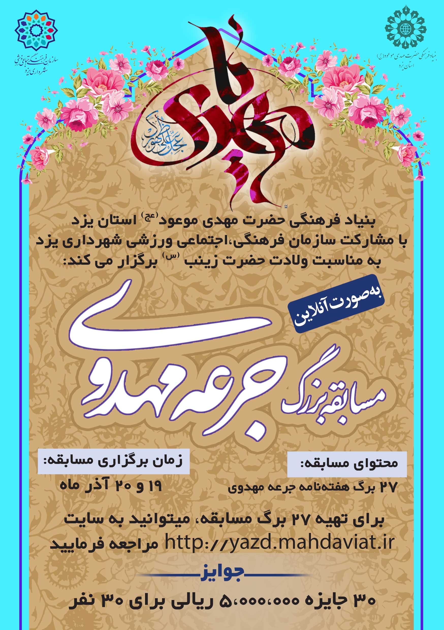 علاقمندان به شرکت در این مسابقه که جایزه آن 30 کارت هدیه 5 میلیون ریالی است، می توانند به طریق آدرس اینترنتی http://yazd.mahdaviat.ir مراجعه کنند.