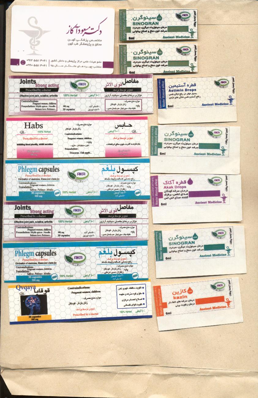 در خصوص عرضه فرآوردهای تقلبی و دست ساز آقای مسعود آکاز در سطح عطاری ها به اطلاع میرساند فرآورده های فوق الذکر که تصویر برچسب آن به پیوست میباشد هیچ گونه مجوزی اعم از تاسیس،تولید،واردات،توزیع و عرضه از این اداره کل را ندارد لذا مقتضی است دستور فرمایید به جمع آوری فرآورده های مورد اشاره اقدام شود.
