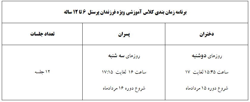 دوره آموزشی شنا مختص فرزندان پرسنل (۶ تا ۱۲ ساله)