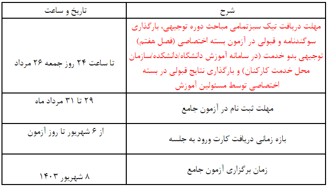 برگزاری آزمون جامع توجیهی بدو خدمت در شهریور