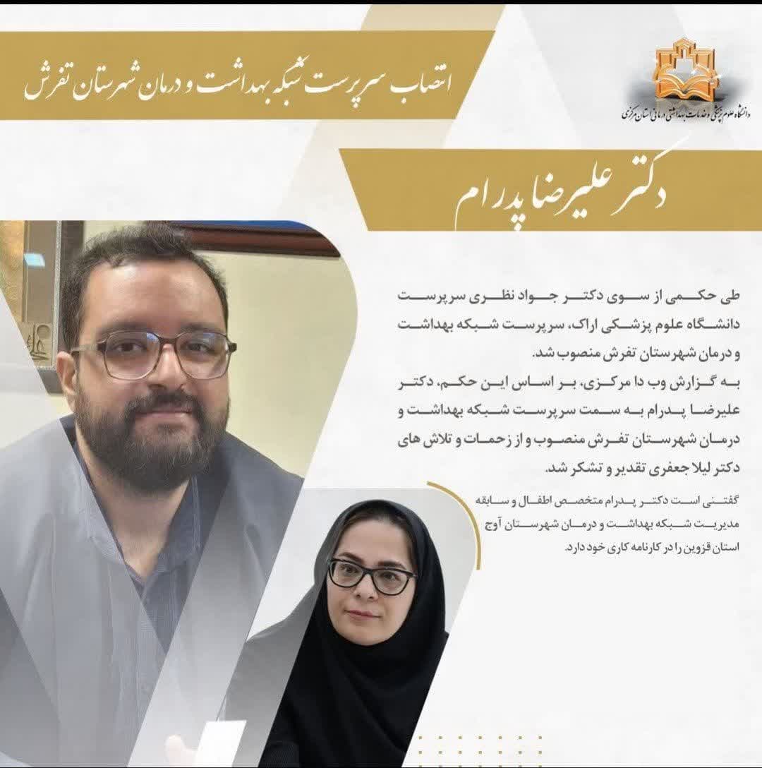 انتصاب سرپرست شبکه بهداشت و درمان شهرستان تفرش