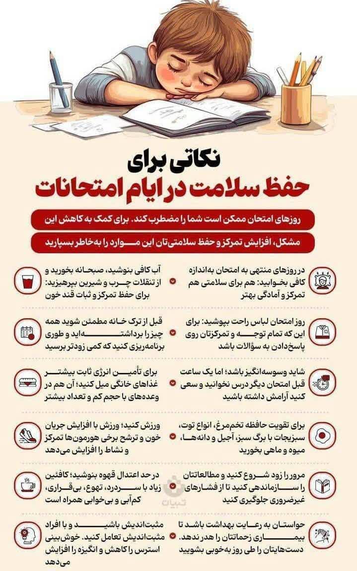 باتوجه به نزدیک شدن به فصل امتحانات دانش آموزان،لازم است والدین گرامی نکاتی را مد نظر داشته باشند .
