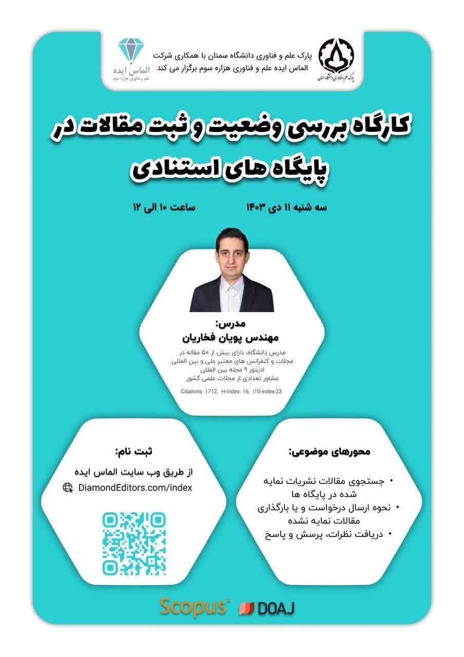 کارگاه مجازی بررسی وضعیت و ثبت مقالات در پایگاه های استنادی در روز سه شنبه ۱۱ دی ۱۴۰۳ از ساعت ۰۰:۱۰ الی ۰۰:۱۲ برگزار می شود .