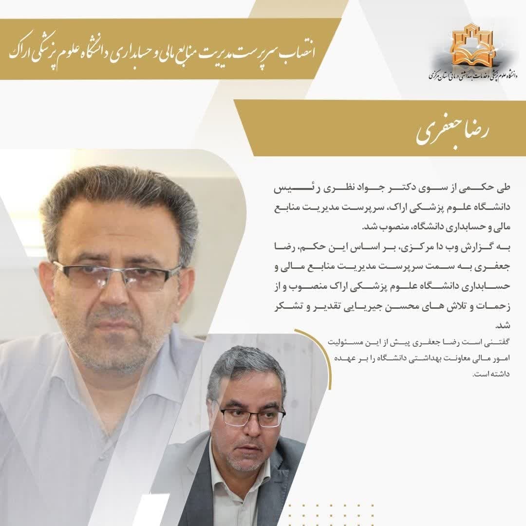 گفتنی است رضا جعفری پیش از این مسئولیت امور مالی معاونت بهداشتی دانشگاه را بر عهده داشته است.