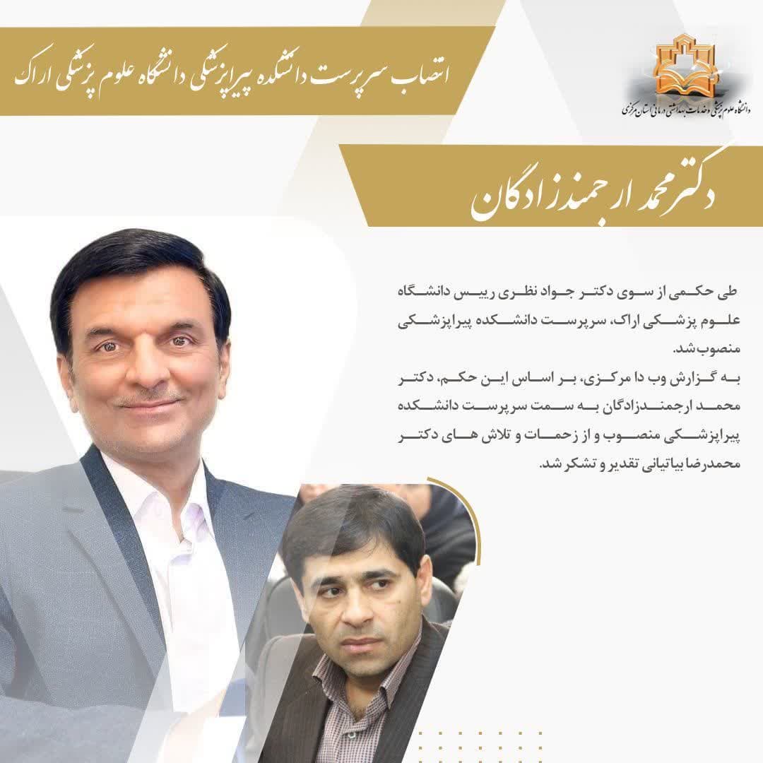 و طی حکمی از سوی دکتر جواد نظری رییس دانشگاه علوم پزشکی اراک، سرپرست دانشکده بهداشت منصوب شد.