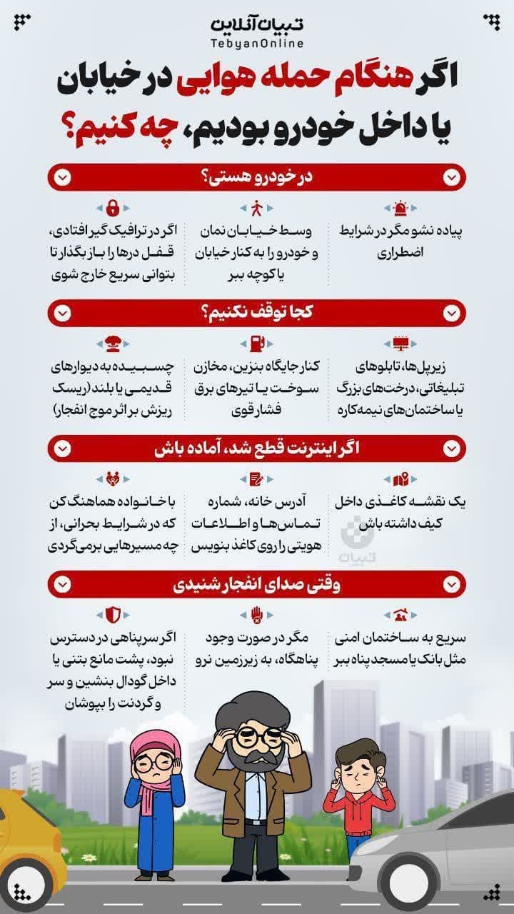 اگر هنگام حمله هوایی در خیابان یا داخل خودرو بودیم، چه کنیم؟