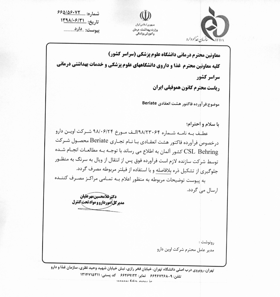 فرآورده فاکتور هشت انعقادی Beriate ۱۴ مهر ۱۳۹۸ | ۱۴:۳۸ کد : ۶۰۱۷ اخبار اصلی ارسال به دیگران نام شما ایمیل شما ایمیل دریافتکننده ارسال انصراف تعداد بازدید:۱۰۷۹