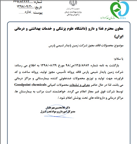 محصولات فاقد مجوز شرکت زمین پایدار شیمی پارس ۲۴ آذر ۱۳۹۸ | ۲۱:۳۹ کد : ۶۹۲۰ اخبار اصلی ارسال به دیگران نام شما ایمیل شما ایمیل دریافتکننده ارسال انصراف تعداد بازدید:۱۵۵۳