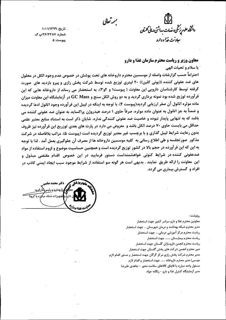 عدم وجود الکل در محلول های ضد عفونی کننده (یونی کلین) ۱۳ فروردین ۱۳۹۹ | ۱۹:۴۱ کد : ۸۵۴۰ اخبار اصلی ارسال به دیگران نام شما ایمیل شما ایمیل دریافتکننده ارسال انصراف تعداد بازدید:۳۶۲۴