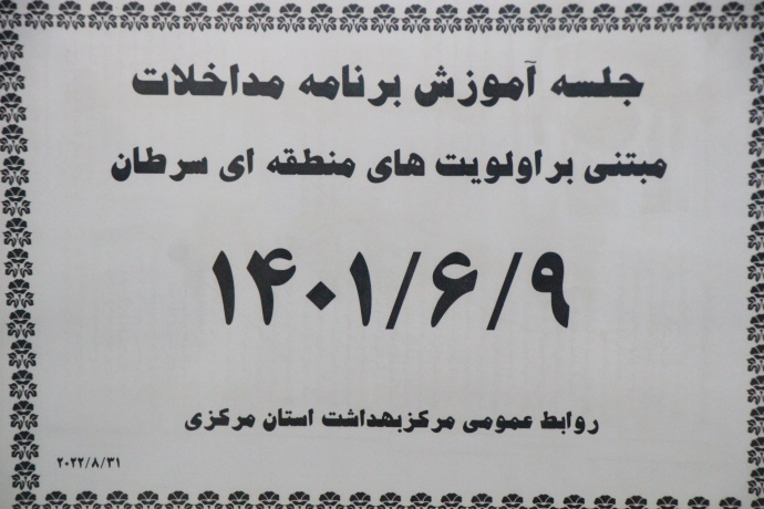 در راستای انعقاد تفاهم نامه همکاری آموزشی معاونت بهداشت دانشگاه علوم پزشکی اراک وموسسه خیریه تبسم برای چهارمین سال متوالی با هدف افزایش سواد سلامت عمومی جامعه در پیشگیری وکنترل سرطان ، جلسه نشست هماهنگی اجرای همکاری آموزشی در برنامه مداخلات مبتنی بر اولویت های منطقه ای سرطان با تغییر رویکرد روند ارائه آموزش ها در مناطق روستایی شهرستان اراک در روز چهارشنبه مورخ 9/6/1401 در دفتر معاونت بهداشتی با حضور اعضای محترم موسسه خیریه تبسم ، معاونت بهداشتی ومرکز بهداشت شهرستان اراک با بیان نحوه اجرای مطلوب برنامه بر اساس تفاهم نامه منعقد شده طی نیمه دوم از سال 1401 برگزار گردید.