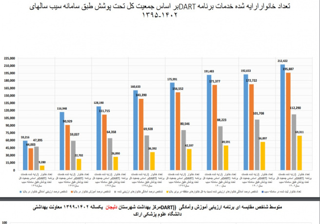 اردلان زیلابی اظهار داشت: در این راستا با تلاش و پیگیری تمامی همکاران حوزه بهداشت بویژه پرسنل (مراقبت سلامت، بهورزان) در سطح تمامی شهرها و روستاهای تابعه (۹ شهرستان) در سال ۱۴۰۲ از حدود ۳۴۵۰۰۰ خانوار تحت پوشش ۲۱۳،۰۰۰ خانوار مورد ارزیابی و آموزش (جهت ارتقاءآمادگی خانوار در برابر حوادث وبلایا، مخاطرات طبیعی) قرار گرفتند.