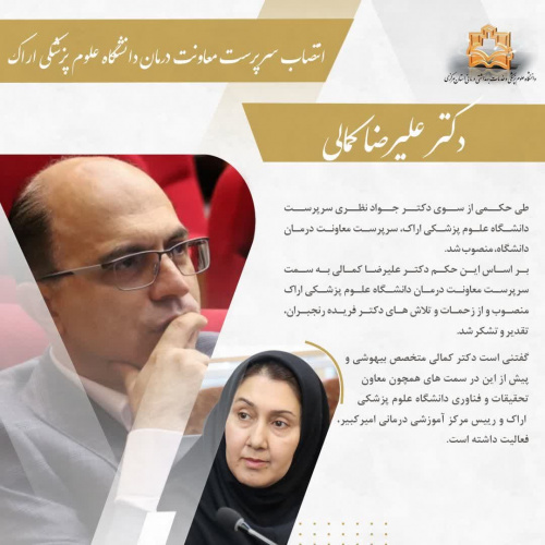 بر اساس این حکم دکتر علیرضا کمالی به سمت سرپرست معاونت درمان دانشگاه علوم پزشکی اراک منصوب و از زحمات و تلاش های دکتر فریده رنجبران، تقدیر و تشکر شد.